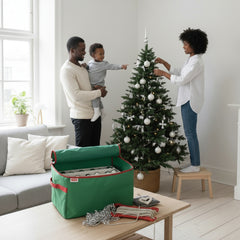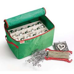 Store up to 72 baubles and other Christmas decorations away when the festive season is over in our sturdy zip-up storage bag. The bag comes with three stiff cardboard divider trays which each holds 24 baubles. When not in use, the bag folds flat for easy storage during the festive season. A great idea for space poor households where there is no room to store plastic decoration storage boxes once the decorations are taken out of the loft and the tree is up.