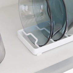 This handy storage rack securely organizes soup or salad bowls by storing them side by side, keeping each one easily accessible. It holds up to 6 bowls, depending on their size and shape, and features silicone feet for enhanced stability.