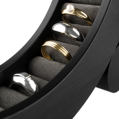 Make a statement with our new Ferris jewellery organiser. This stylish jewellery holder is the perfect addition to any bedroom or dressing room to store and protect your rings and studs. Crafted from ashwood with a real wood finish, Ferris features velvet padded pillows meaning that you don't need to worry about scratches to your favourite pieces. Its modern design is sure to complement any decor. Can hold up to 33 rings. Choose from walnut or natural.