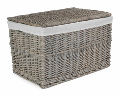 Our new storage chest is sure to make a welcome addition to almost any room of the house. Crafted from willow with an antique wash, the Fisherman's storage basket comes with a removable cotton lining keeping the contents secure. The lid is easy to open and close thanks to the two grey faux leather hinged straps. Use in the bedroom for spare linen, in the playroom for toys or how about in the living room for magazines, remotes, DVDs etc. Smaller size also available.