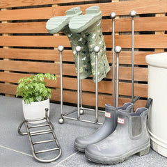 Designed to hold up to 4 pairs of wellington boots, it stores them upside down to help them air dry naturally and stay ready for the next outdoor adventure. Perfect for porches, utility rooms or by the back door, this smart welly boot stand keeps floors clear, reduces clutter and adds a refined country-home touch to your space.