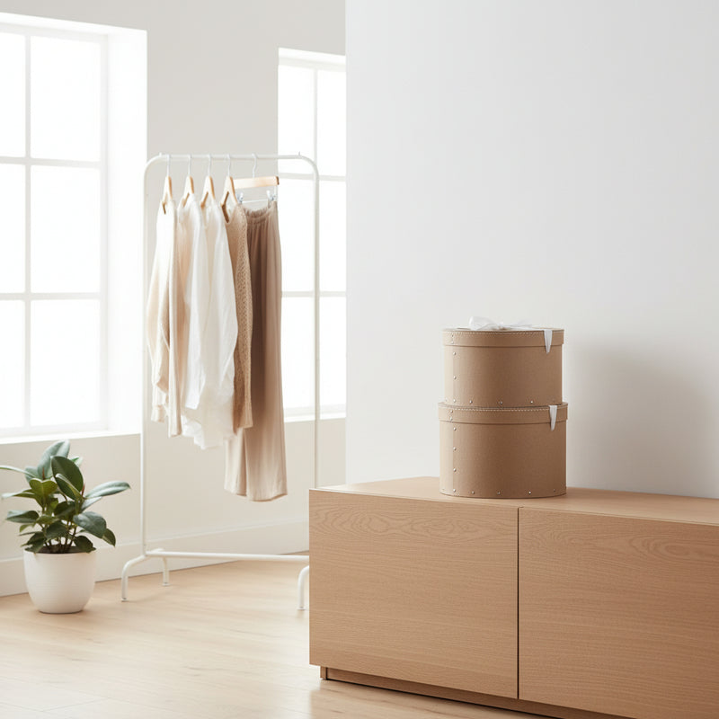 Keep your home beautifully organised with our Bigso Hat Boxes, perfect for far more than just hats. These stylish, sturdy storage boxes feature exquisite stitching, decorative studs, and a charming calico ribbon, making them a favourite accessory come race day and a timeless storage solution year-round.