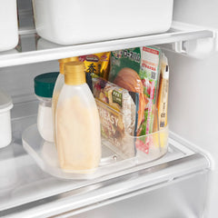 This space-efficient storage tray with compartments optimises fridge or cabinet space by making items at the back easier to reach. Its rotating function provides access from all sides, keeping essentials organized and handy.