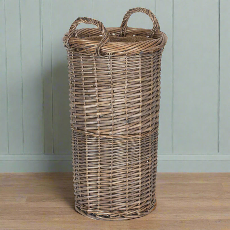 Store long golfing brollies and walking sticks in style with our antique wash willow umbrella stand. The basket offers a country feel and the 2 sturdy carry handles make it easy to move when needed. Ideal for using in the corner of a hallway or utility room thanks to its compact footprint. Features a hessian lining. Please note that the dimensions may vary slightly as it is a natural product.