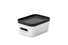 Streamline your fridge or cupboard with this small-size transparent food storage container, perfect for small fruits and vegetables, packets of herbs, small jars, or snack bars. The clear design keeps contents visible, while the tray lid makes stacking simple.