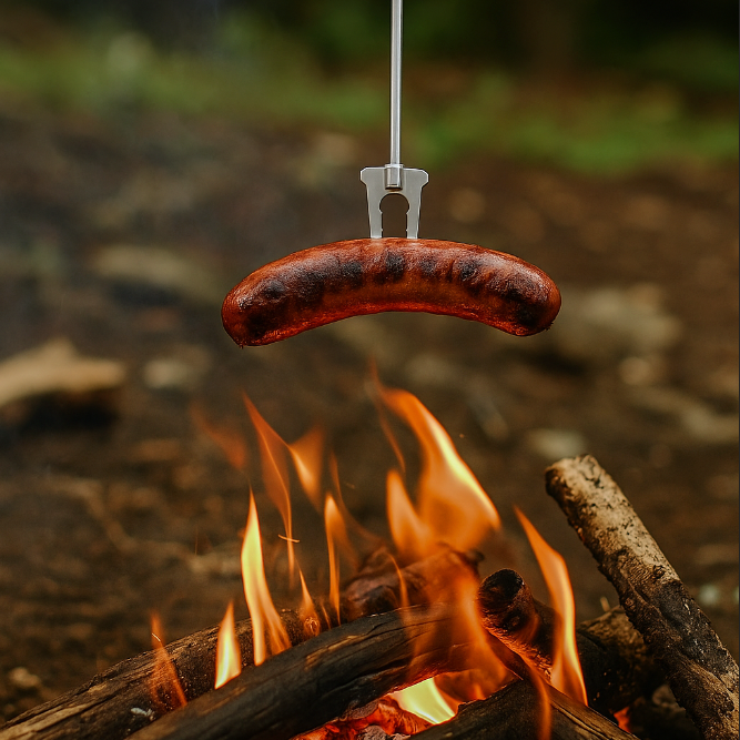 Have a good time around the fire and enjoy tasty chargrilled sausages using our telescopic BBQ fork. Extend the fork and place a sausage on the end and hold by the wooden handle whilst cooking. The telescopic design makes it perfect for use on open flames while keeping a safe distance. Ideal for use when camping, around a fire pit in the garden etc and as it folds down to 19cm it's easy to store away. The hole at the end of the handle makes it easy to hang.
