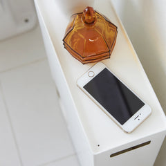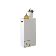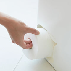 This toilet paper holder discreetly stores up to 8 rolls, with a sloped design that ensures the next roll automatically slides down when one is removed. The detachable lid allows for easy refilling and doubles as a storage shelf.