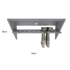 Store up to 4 pairs of wellies or boots on our solid wooden wall mounted welly rack. Simply slide the foot of the boot onto the rack and your wellies will air-dry in no time. Perfect for clearing the porch, hallway or garage from clutter this lovely rack is finished in grey and built to stand the test of time. The rack is finished with a protective shelf to protect your wellies from unpredictable British weather or indeed sun damage to the rubber boot plus it acts as a neat shelf to store other shoes etc. Simple self-assembly required