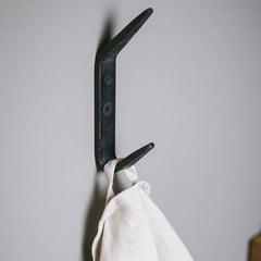 This simple yet stylish double coat hook is the perfect solution to organising coats, bags and jackets in any porch, hallway, entryway etc. Handmade from wrought iron, our new hook is great at adding a subtle industrial touch and is sure to fit in with any decor.